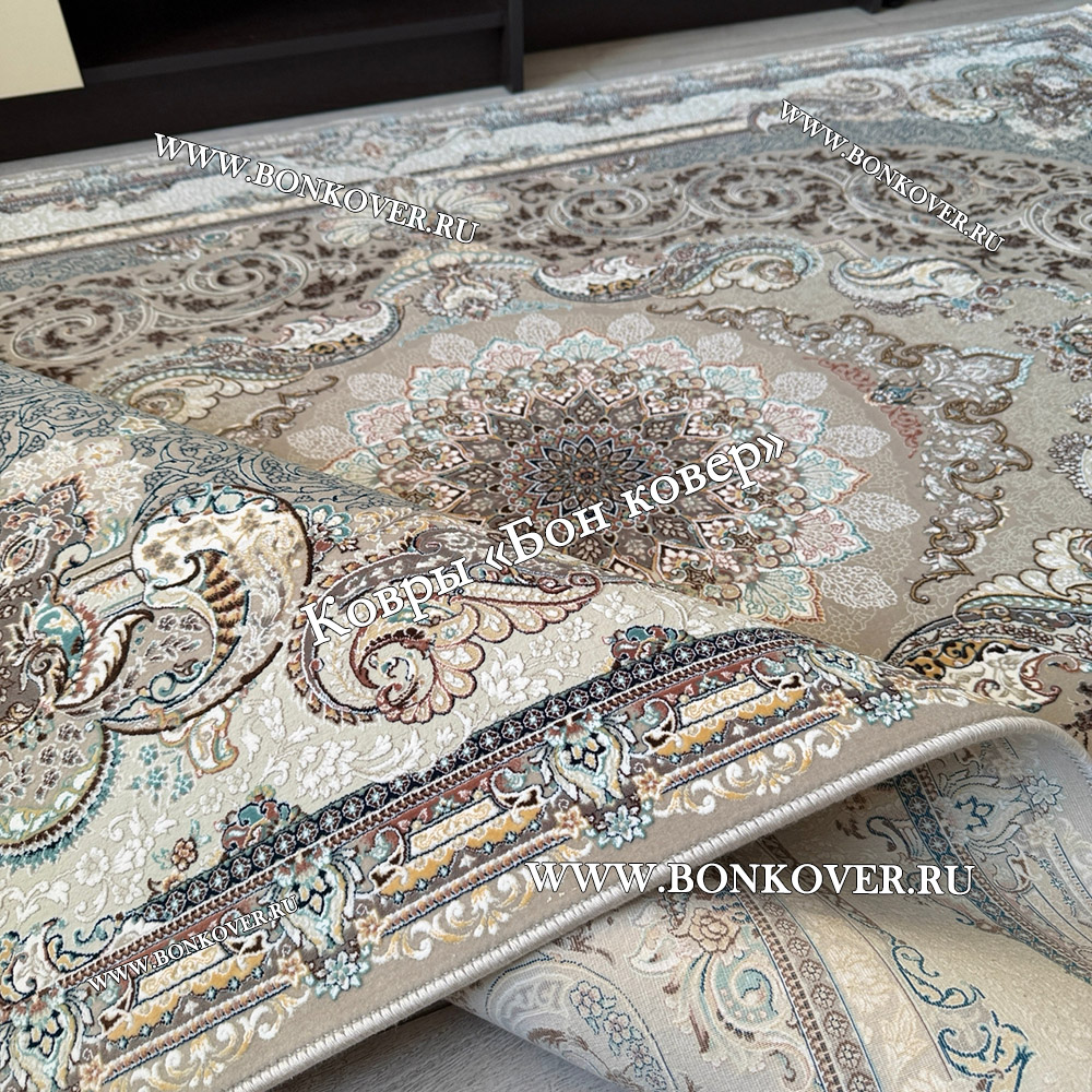 Импозантный Ковер Для Гостиной Медальон Дизайн 30592 наполняет интерьер помещения теплом и уютом, гармонично сочетает в себе изящество и стиль. Он изготовлен из экологически чистого сырья, комфортный и долговечный.